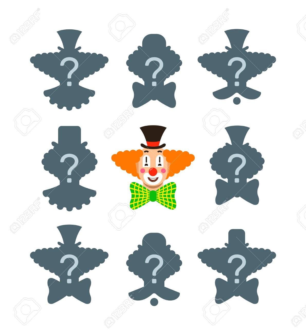 Match The Correct Silhouette Of Funny Clown Face Visual Test Royalty Free Cliparts Vectors And Stock Illustration Image 95630547 - Sfoglia 177 clown silhouette fotografie stock e immagini disponibili, o avvia una nuova ricerca per scoprire altre fotografie stock e immagini.
